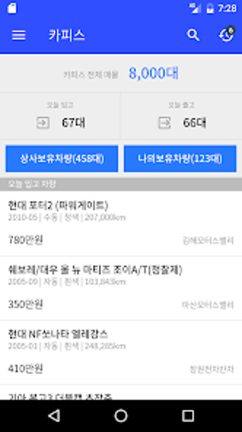 카피스ver2, ikinci el araç satıcıları için tasarlanmış bir mobil uygulamadır. Bu uygulama, özellikle 부산 ve 경남 bölgesindeki 9000'den fazla ikinci el araç bilgisine erişim sağlar. Kullanıcılar, araç arama özelliği sayesinde model adı veya plaka numarası girerek araçları hızlıca bulabilir. Ayrıca, filtreleme seçenekleri ile arama işlemini daha da özelleştirme imkanı sunar. Uygulama, kullanıcıların daha önce gördükleri araçları takip edebileceği ve favori araçlarını kaydedebileceği yeni özellikler ile donatılmıştır.